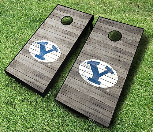 BYU Brigham Young University Cougars Distressed Themed Cornhole Wraps Board Set Bean Bag Toss + 8 ACA Regulation Bags ~ Made in The USA