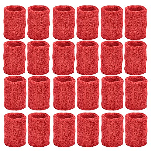 Unique Sports Athletic Performance Team Pack of 24 Wristbands (12 pair), Red